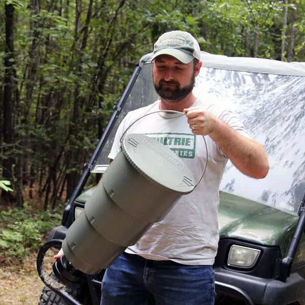 La mangeoire suspendue 5 gallons tout-en-un est une solution simple et efficace pour l’ensemencement du chevreuil. Avec son seau pliable en plastique robuste pouvant contenir jusqu’à 30 lb d’appât, elle ne nécessite aucun assemblage et s’installe facilement grâce à son crochet intégré. Le kit All-In-One comprend une plaque de distribution en métal résistante au vent, un entonnoir intégré pour un écoulement optimal, ainsi qu’un minuterie numérique rabattable pour programmer la distribution.