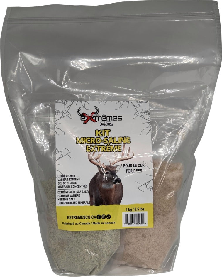 Caractéristiques et bénéfices • Vasière Extrêmes : reconnue pour sa forte odeur d'urine, cette base agit puissamment au niveau olfactif et son mélange de soufre et de minéraux travaille le sol d'une saline pour stimuler rapidement l'intérêt du gibier• Extrêmes Mer : le sel de mer riche en minéraux et oligoéléments apporte un complément naturel hautement attractif et nutritif