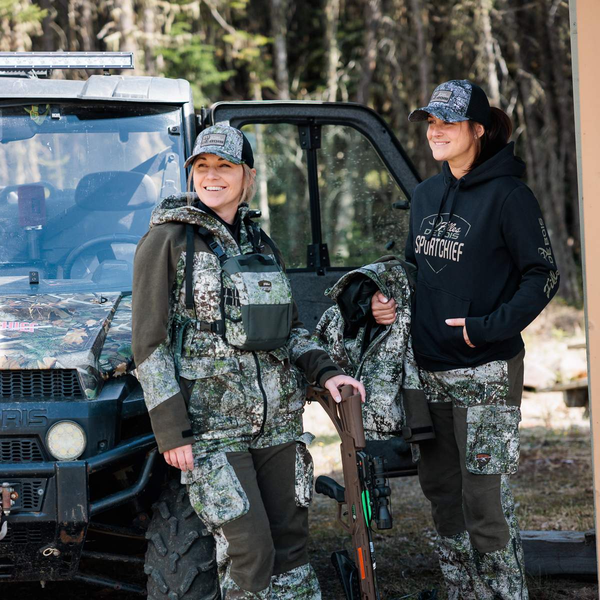 • 2 poches cargo avec fermetures éclair étanches : rangement fonctionnel et accessibles rapidement pour les essentiels de chasse, à l'abri de l'humidité.